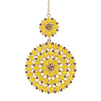 Handcrafted by finest craftsmen. you can wear this with any traditional or western outfit to add glamour and spunk to your look.AccessHer traditional jewellery Kundan Chaandbali Style Maang Tika for women and girls pack of 1