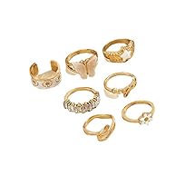 Solitaire Statement Rings bandsDestiny Jewel’s Y2K 6pcs Chunky Gold Stacking Rings (Style-7)