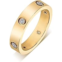 Color Name: Gold 9; Ring Size: One Size; Department Name: WomensEl Regalo Fashion Classic Titanium Steel Women Stacking Ring- Anti Tarnish/Waterproof Cubic Zirconia Stainless Steel Promise Ring for Girls & Women