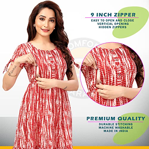 Maternity Dress With 2 Concealed Zip: Stylish Maternity Kurti with Both side invisible 9-inch vertical Opening zippers for simple Breastfeeding access. Easy to open and close this Nursing Kurti anywhere at any time to breastfeed your baby.