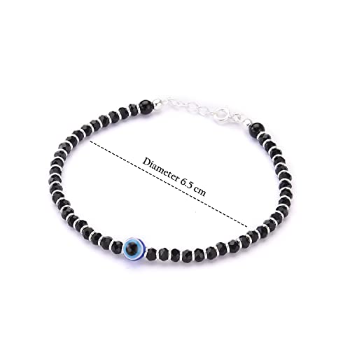 DHRUVS COLLECTION 925 Sterling Silver Evil Eye Nazariya With Black Crystals Bracelet for Girls & Women (6.25 Inches…