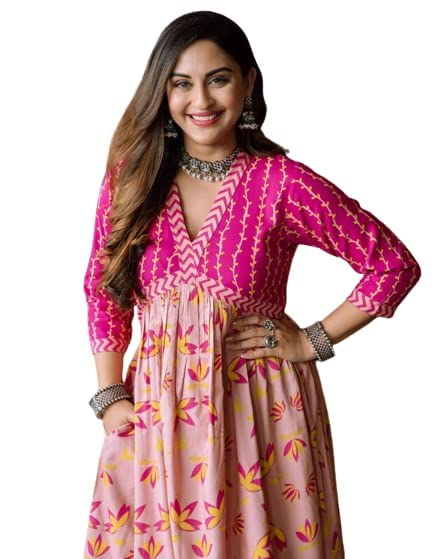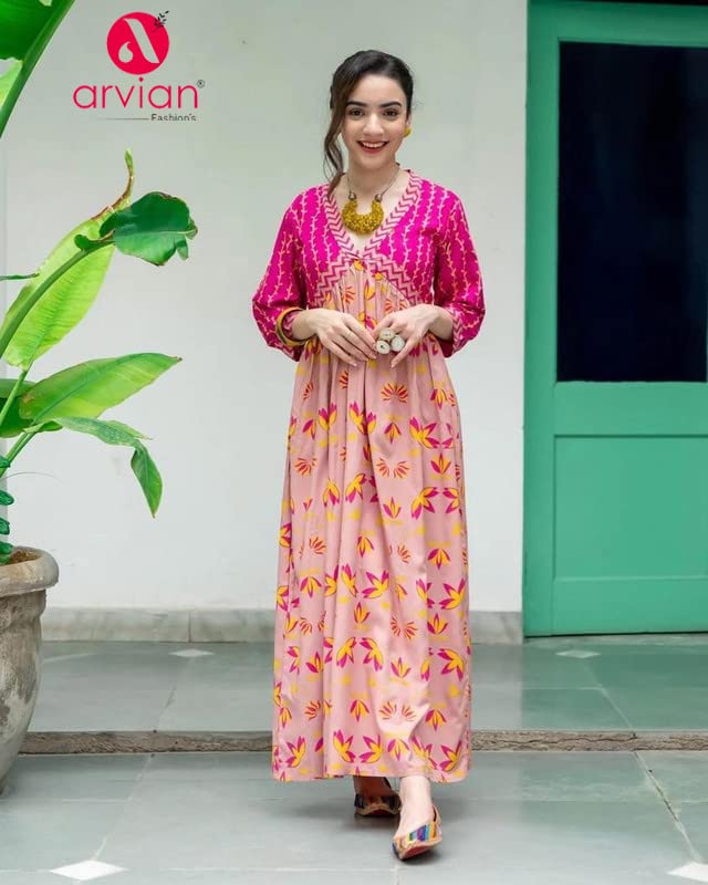 Fabric : Multicolored Floral Revealed Chiffon; Are compatible Sort : A-Line Kaftan Sort ; Length : Under Knee Length ; Sorts Of Sleeves : Kaftan Sleeves
