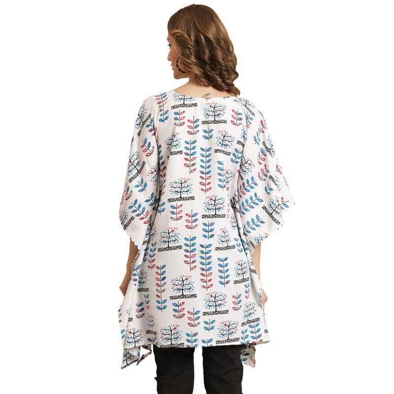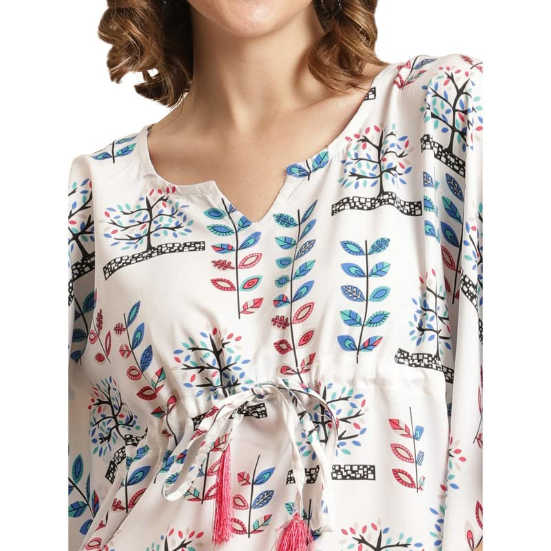 Preneum White Printed V Neck Kaftan Longline Top (PRE-KFT-04)
