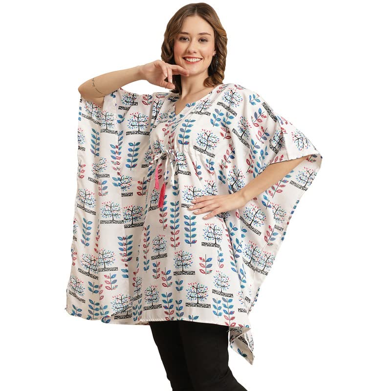Be the first to review “Preneum White Printed V Neck Kaftan Longline Top (PRE-KFT-04)”