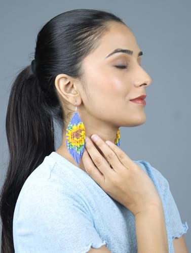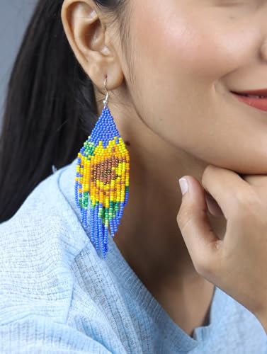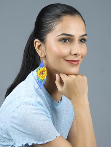 Brighten up your look with these funky and quirky sunflower-inspired beaded earrings. Skillfully hand made, each and every piece captures the colourful great thing about sunflowers with an intricate blend of yellow, green, blue, and brown beads. These lightweight earrings are ideal for adding a pop of color and boho charm on your outfit. Whether you might be dressing up for a festival, an informal day out, or a summer birthday party, these earrings will keep your style effortlessly fresh and amusing.
