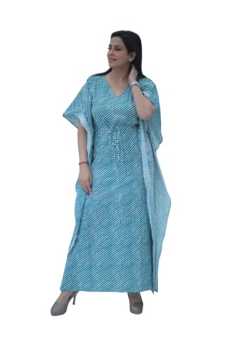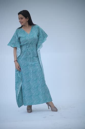 Veronica Girls/Women Cotton Tie and Die Printed Dress Kaftan Gown Beachwear with Cute Pompom Tassel