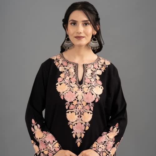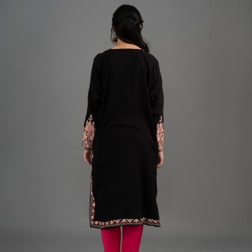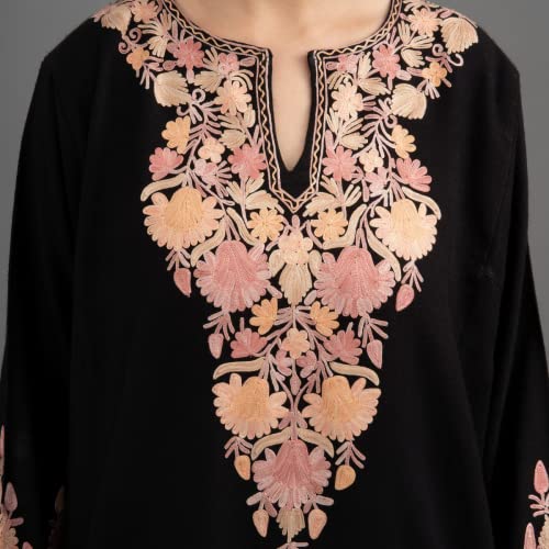 Women’s Rayon Kashmir Box Pastel Neck Aari Embroidered Black Cashmilon Phiran Kurta